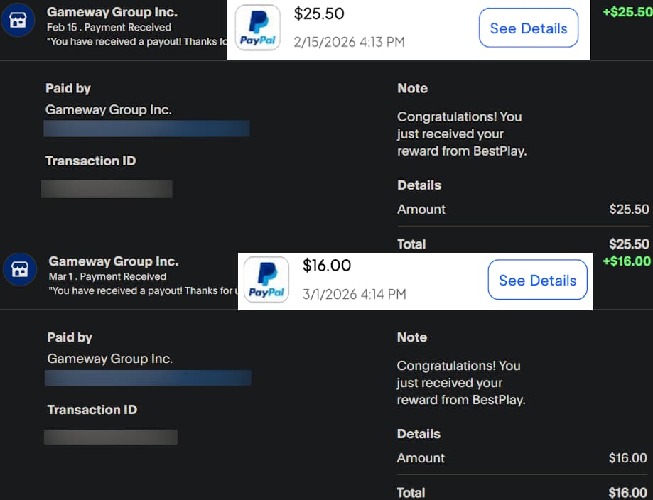 BestPlay Payment Proof Screenshot